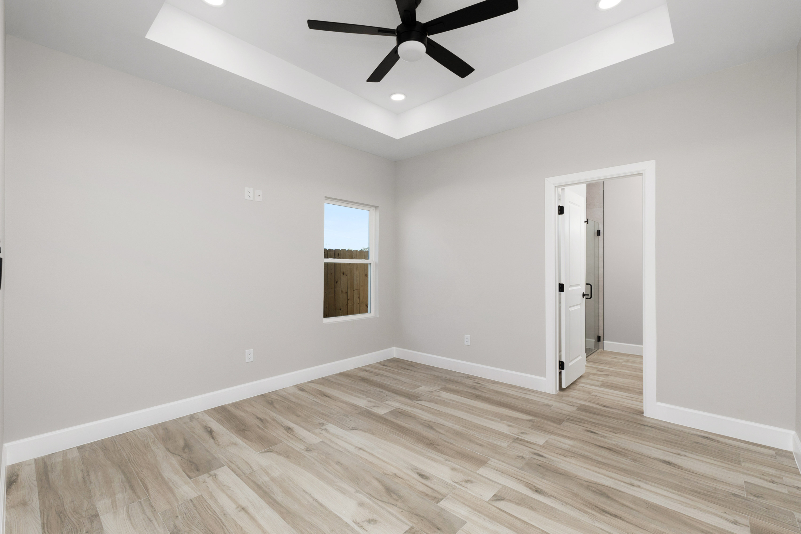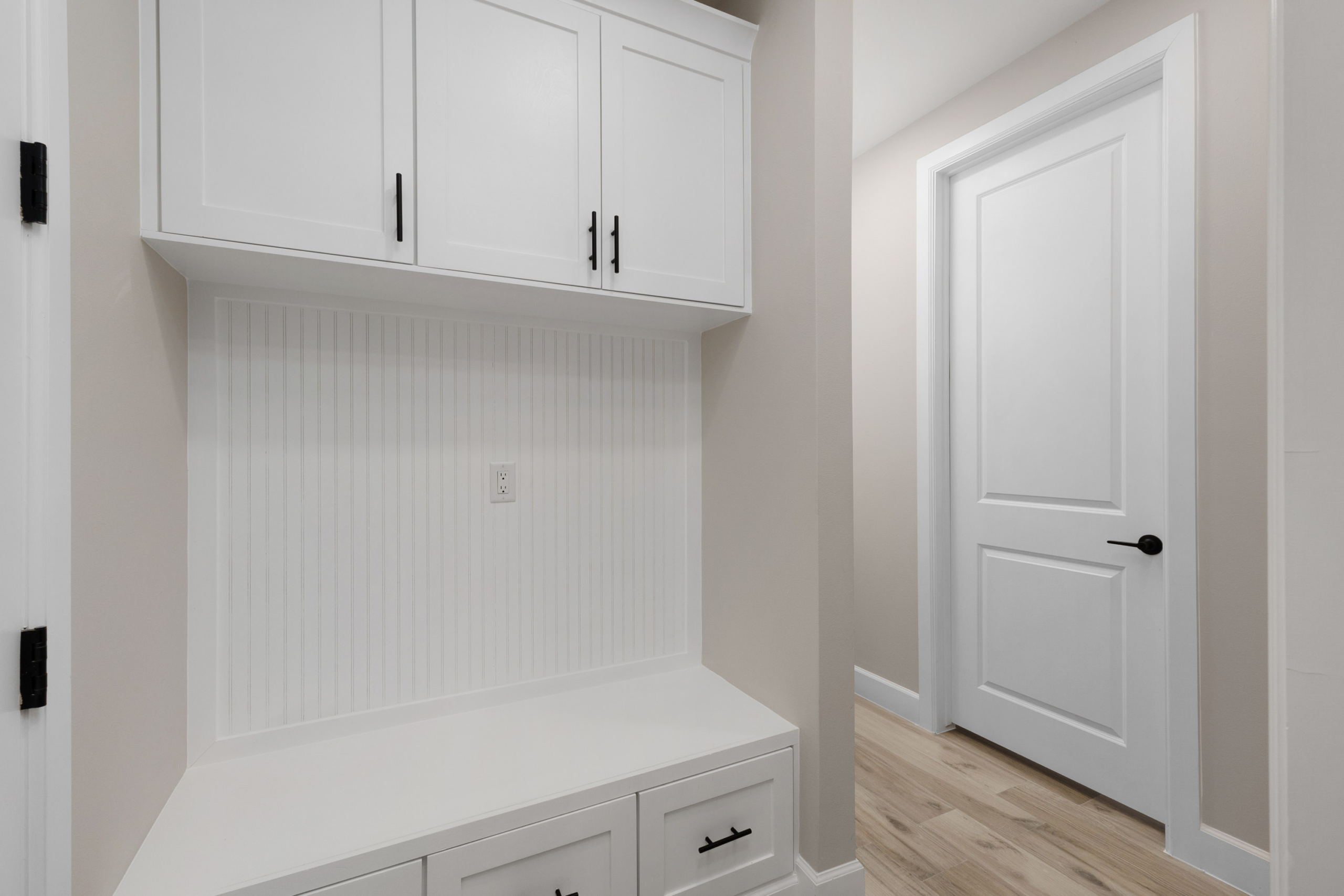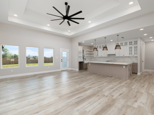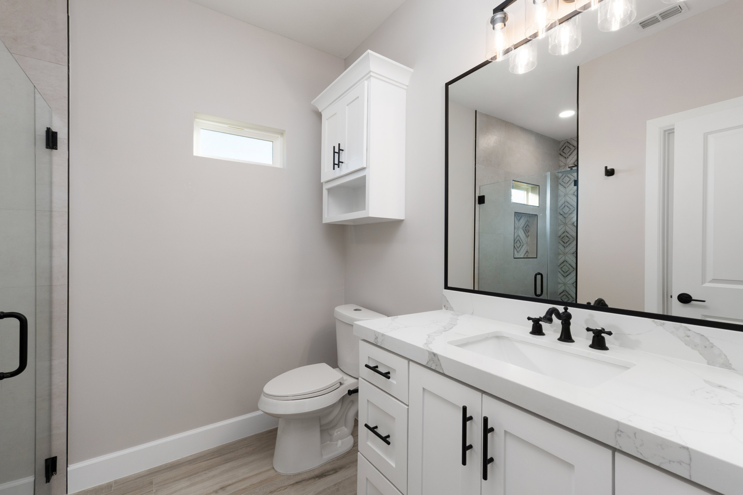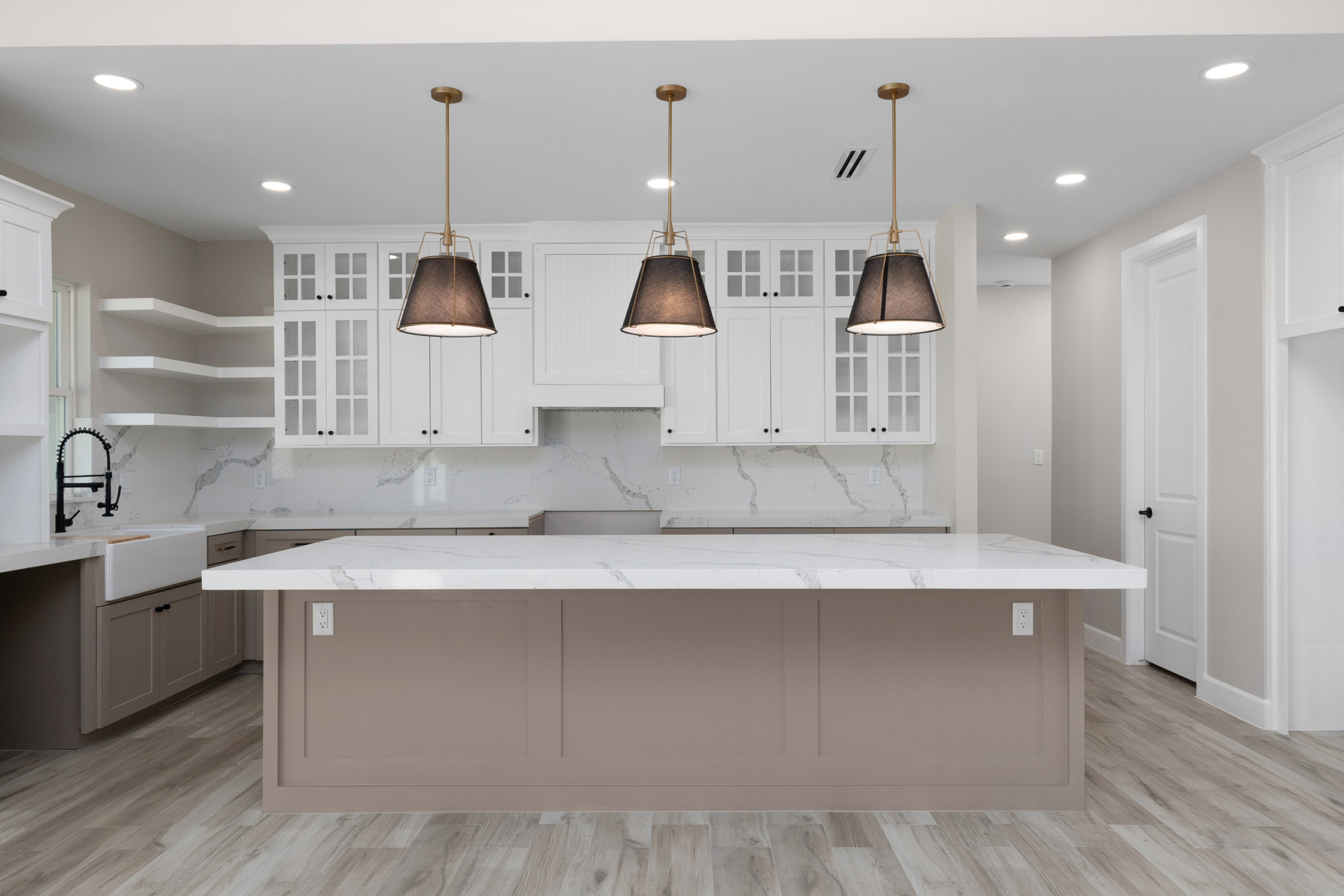 Stunning executive home with modern amenities and elegant versatile design and color palette is now ready to show!! This home has an open concept living space that is perfect for family and entertaining. Beautifully designed kitchen with quartz countertops and backsplash and exquisitely matched pendant shade lighting elevate the space. High ceilings feature recessed lighting and ceiling fans. Custom built in amenities for storage and organization are found in the living room, mud room space and laundry room. Two bedrooms include a full bathroom en suite. Bathrooms are spaciously designed with plenty of counter and cabinet storage space. Bathroom showers feature glass doors and beautifully inlaid tile designs. Enjoy your covered back porch patio and privacy fenced backyard of .20 acres!!