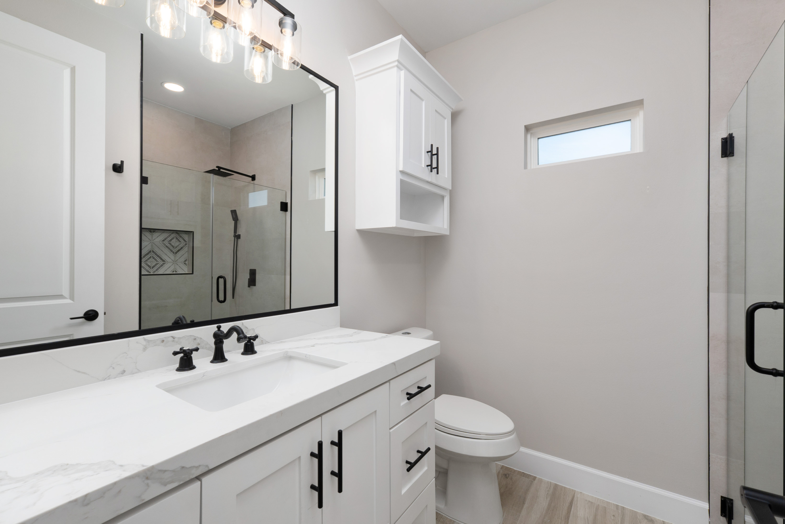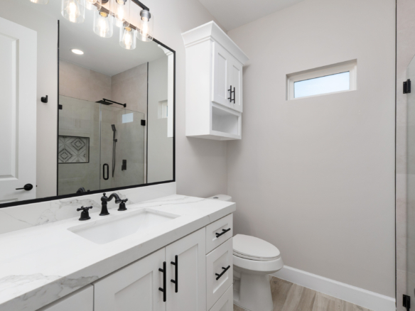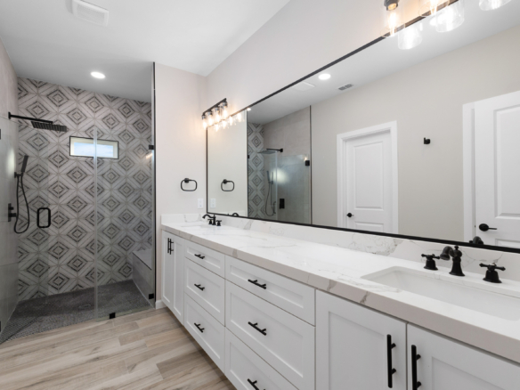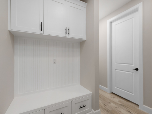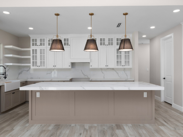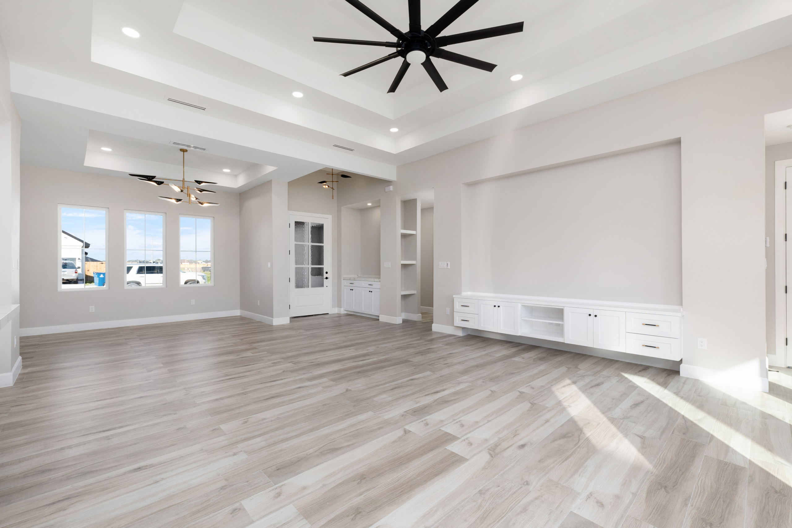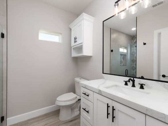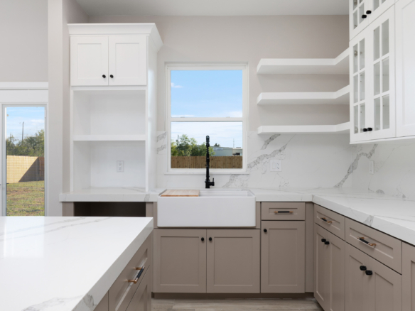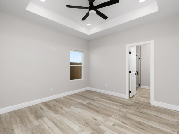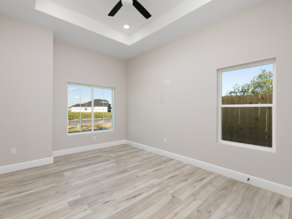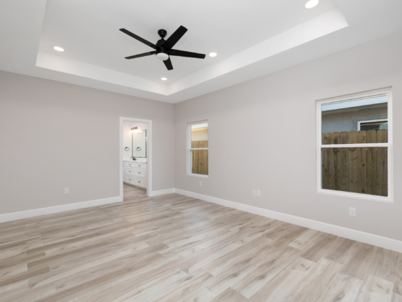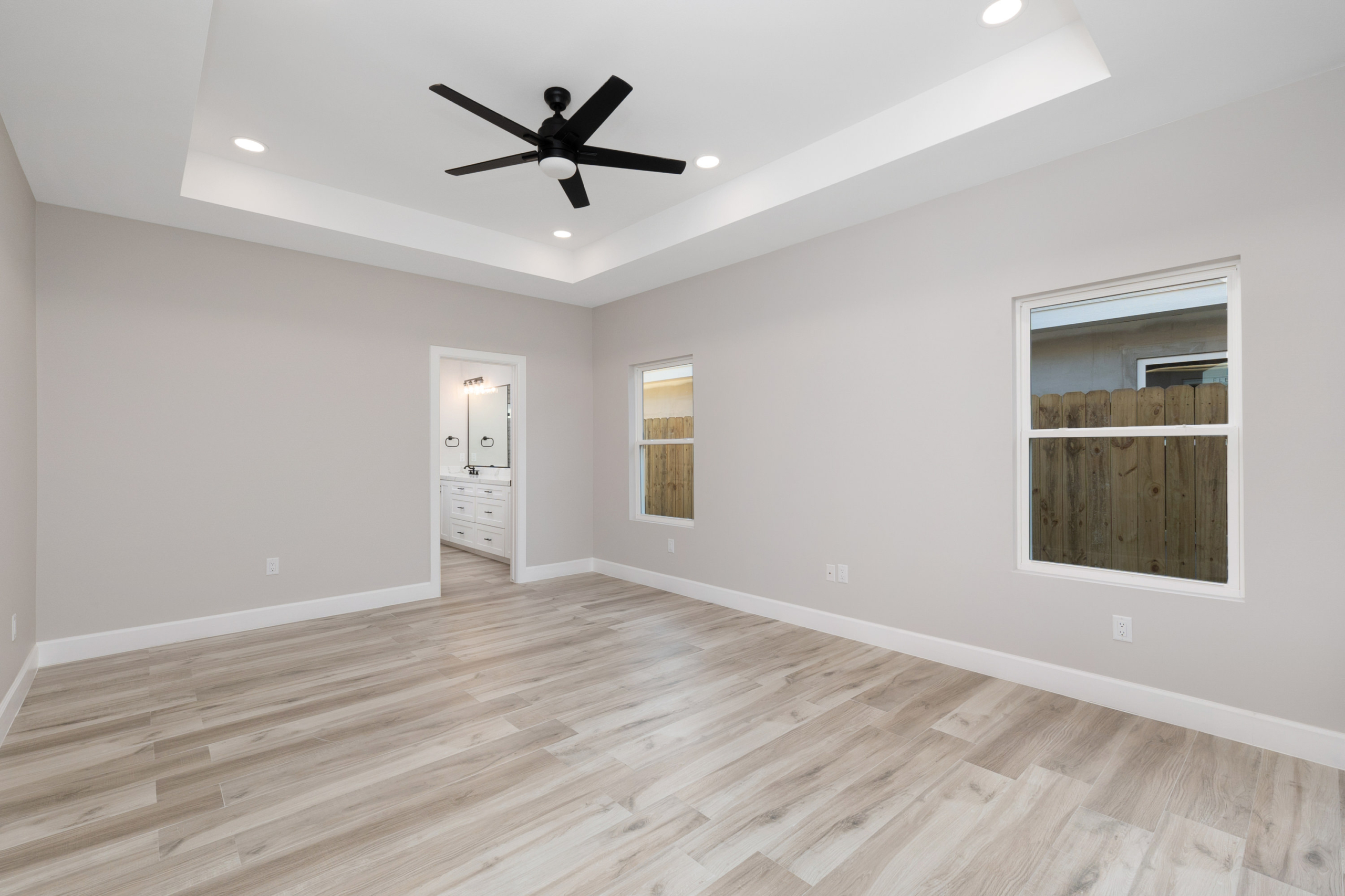 Stunning executive home with modern amenities and elegant versatile design and color palette is now ready to show!! This home has an open concept living space that is perfect for family and entertaining. Beautifully designed kitchen with quartz countertops and backsplash and exquisitely matched pendant shade lighting elevate the space. High ceilings feature recessed lighting and ceiling fans. Custom built in amenities for storage and organization are found in the living room, mud room space and laundry room. Two bedrooms include a full bathroom en suite. Bathrooms are spaciously designed with plenty of counter and cabinet storage space. Bathroom showers feature glass doors and beautifully inlaid tile designs. Enjoy your covered back porch patio and privacy fenced backyard of .20 acres!!